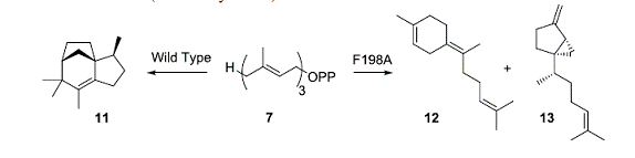have shown that targeted point mutations in the terpenoid cyclase enzyme epi-isozizaene synthase can significantly alter