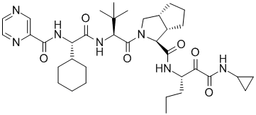 The FDA has also approved boceprevir (Victrelis, Merck) for hepatitis C virus (HCV) infection.This compound has a similar structure and the discovery program had an active crystallography group: